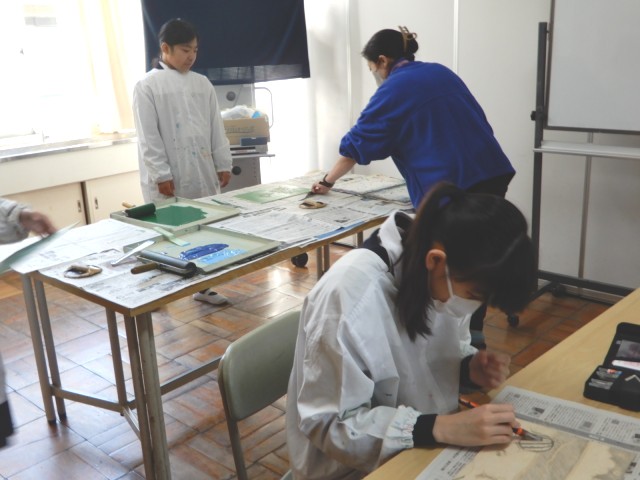 あおば学級の生徒が美術で、彫刻・版画やゼンタングルに取り組んでいました。それぞれの工程で細かい作業、丁寧な作業がありますが担当教員に教えてもらいながら自分のペースで取り組んでいました。