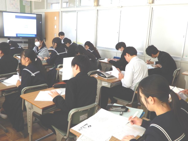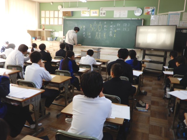 昨日まで実施した確認テスト・期末テストの返却を行っていました。三年生の教室では点数等の確認も行っていましたが、その後に間違っていた問題に再度取り組んでいる姿がみられました。とても集中しているようでした。
