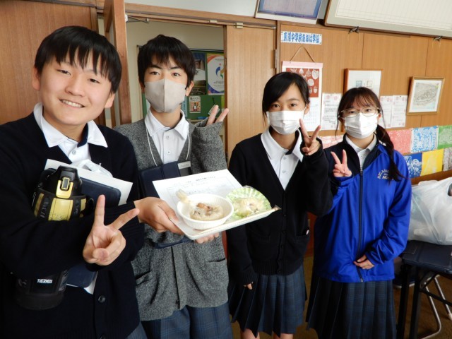 2年生が家庭科の調理実習でとり飯と鬼まんじゅうを作りました。今回も試食として校長室のもってきてくれました。とり飯は防災食の一つでもあります。