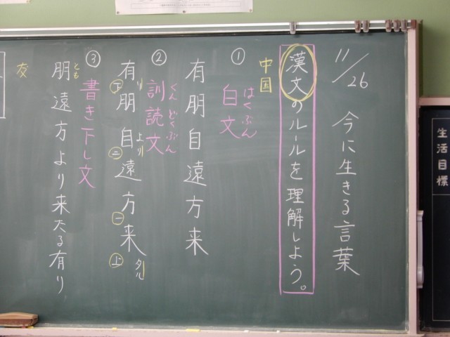 今日から漢文の授業が始まったようです。まずは漢文のルールについて学んでいました。レ点とはの説明を受けていました。