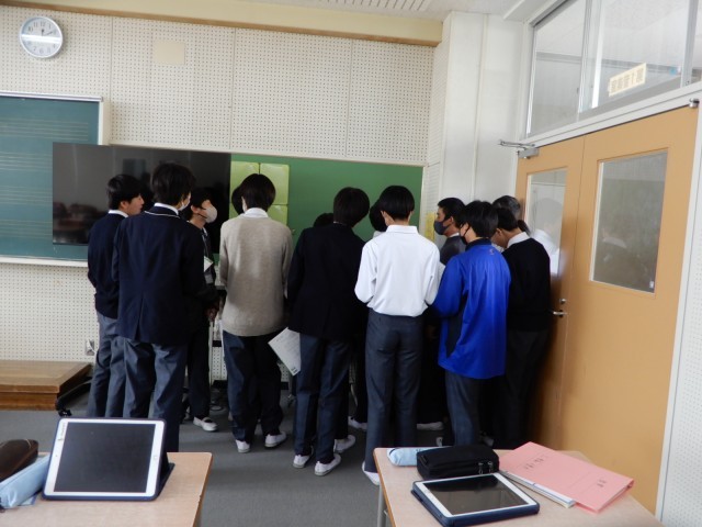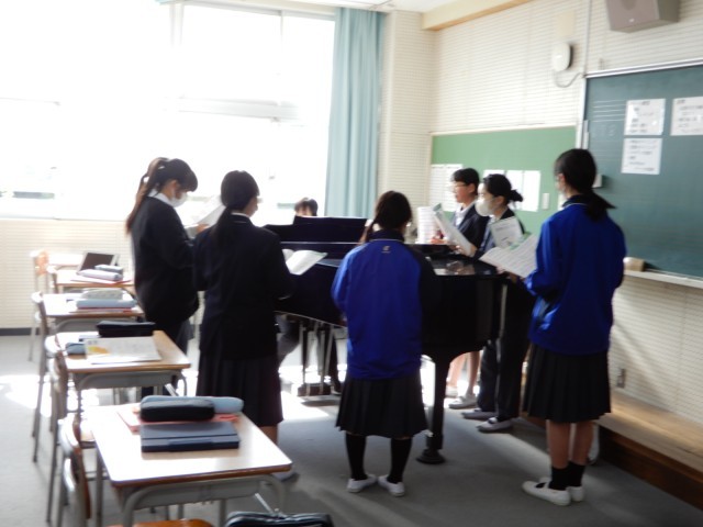 テストで歌う曲の練習をパートに分かれて行っていました。合唱コンクールで培った自分たちでも練習できる力を出していってほしいです。。