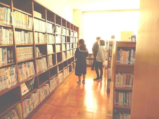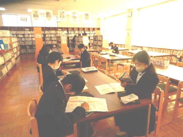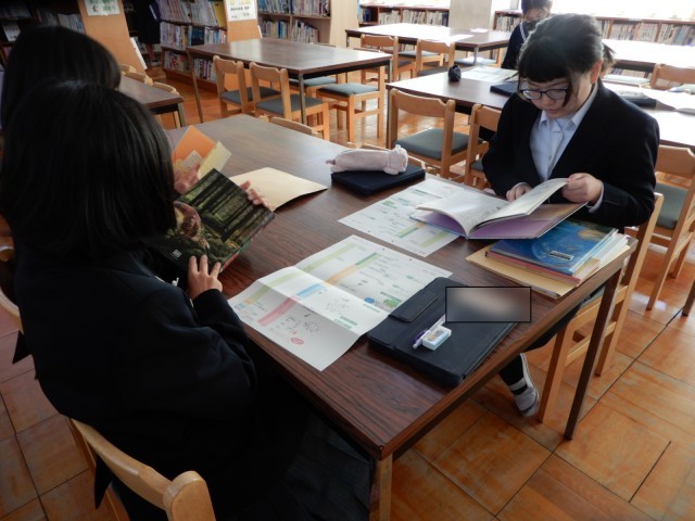 あおば学級の生徒が図書館で理科の授業で行っていました。自分が調べたいことに関する本を探し、その本から必要なことを抜き出しながらまとめていました。電子機器ばかりでなくこのような方法で調べて考えをまとめることも大切です。