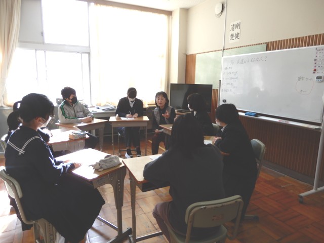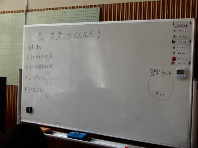 「友達とはどんな人」について担当教員も輪の中に入り、お互いの考え聞きながら自分の考えを伝えていました。
