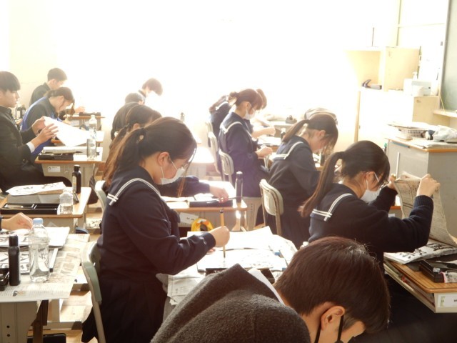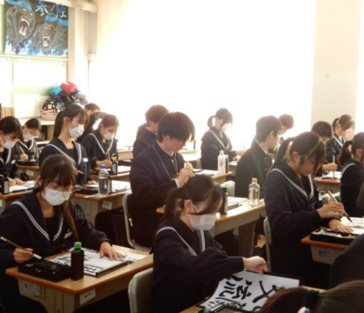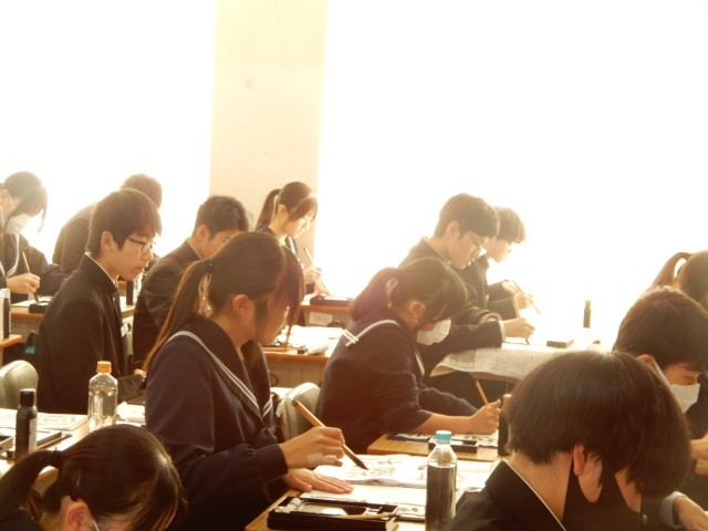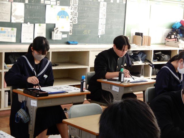 今日も三年生がとても落ち着いた雰囲気の中で書写に取り組んでいました。