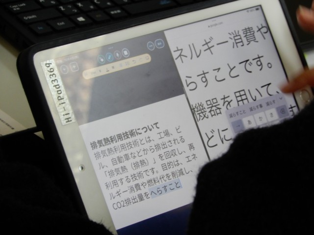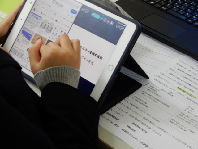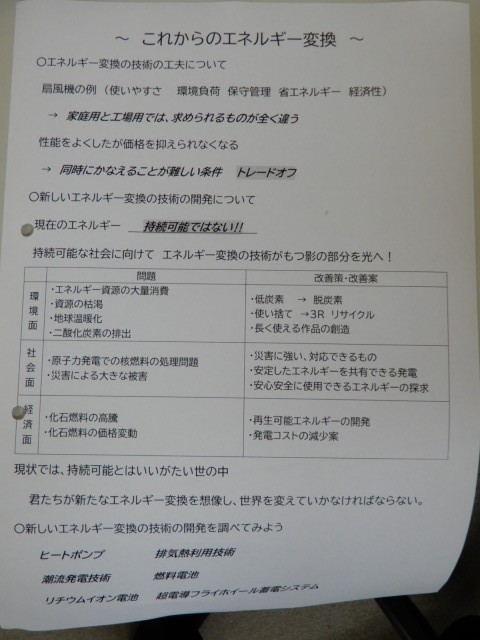 2年生の技術でエレルギーの変換について6つのテーマの中から一つ選びまとめをしていました。学んだことやそれらから考えることをタブレットを活用してレポートを作成していました。