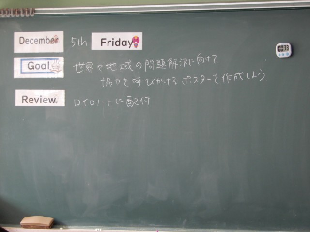 12/5(金)1年 英語 公開日 2025/12/05 更新日 2025/12/05 1年生 1年生の英語で授業研究を行いました。この単元で学習した文法を活用して、世界や地域の問題解決を呼びかける英語のポスターを作成する準備をしていました。学習してきたことをどのように応用・活用できるかを試していました。 +4 1年生