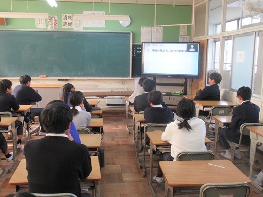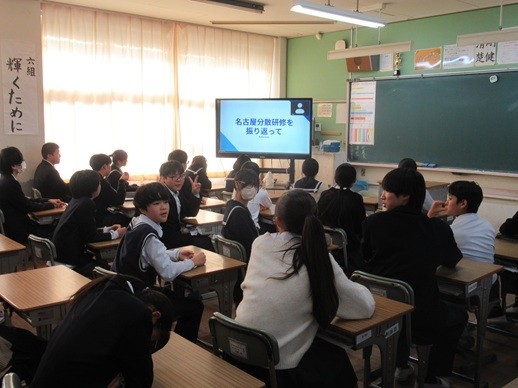 5時間目、2年生が来年度に実施される修学旅行の説明を電子黒板のZOOMを使って行いました。今回は大まかな日程や目的などを説明しました。生徒たちは目を輝かせながら、説明に目と耳を傾けていました。