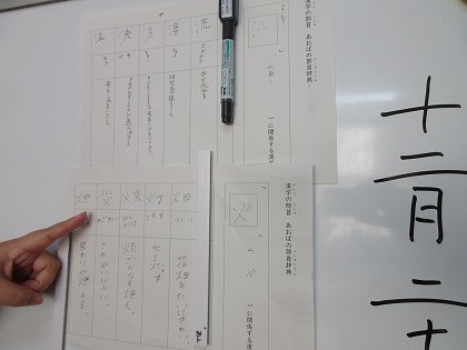 「あおば学級の部首辞典を作ろう」というテーマで学習していました。