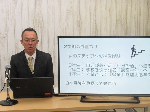 新しい年を迎え、本日各教室で3学期始業式をZOOMによる中継の形で行いました。