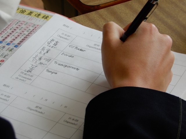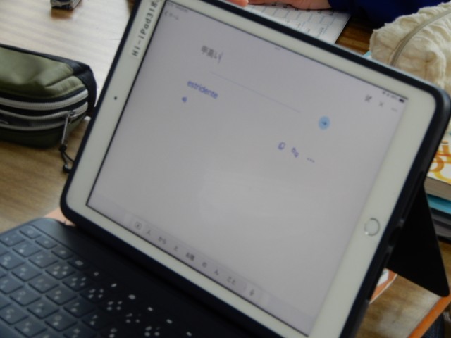 プリント、鉛筆、タブレットを使い分けながら、母語と日本語をつなげる学習をしていました。