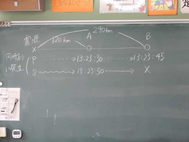 1年生が理科で地震について学習をしていました。どのように伝わるのか、また伝わる速さの計算方法など考えていました。最近日本では多くの地震が起こっています。地震に関して知ることは自分の身を守ることの一つにもなるのではないでしょうか。