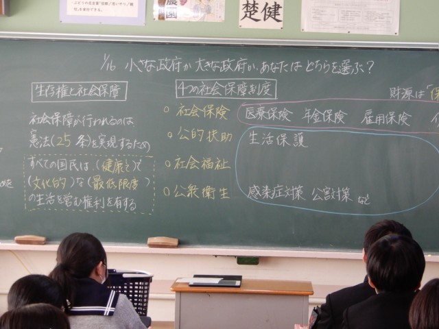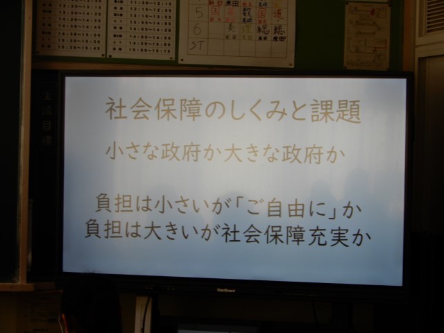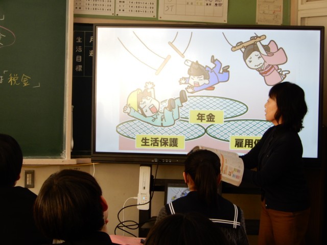 3年生が社会で「社会保障」を題材にどのような生活を送っていきたいかについて考えていました。税金、保険料などの仕組みを知りながら自分の生活と関連付けていくことが大切です。
