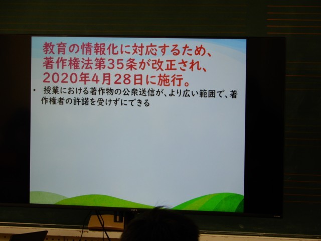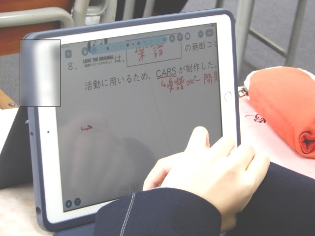 音楽で著作権のことについて学習していました。音源を使う場面などさまざまな場面が想定されます。いろいろな場面を想定して対応できる知識をつけることが大切です。