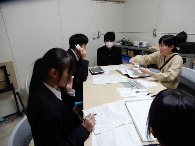 修学旅行で行う班別研修の訪問先の企業に電話連絡をしていました。当日まで事前学習をしながらいろいろなことを準備して研修の日をを迎えます。