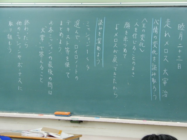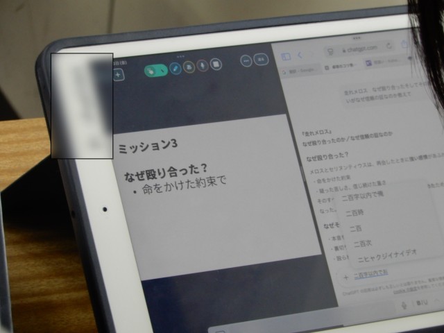2年生の国語で、「読みを深める」を課題として、事前に示されたミッションの中から各自が選択をして学習を進めていました。タブレットを活用しながら各自のペースで取り組んでいます。