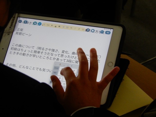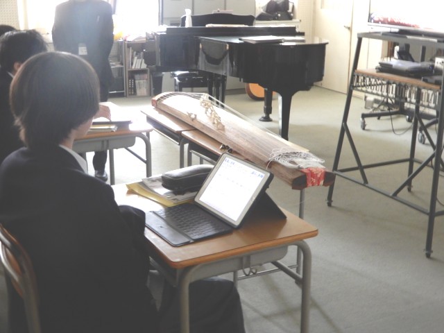 2/5(木)1年 音楽 公開日 2026/02/05 更新日 2026/02/05 1年生 琴の演奏方法を学んでいました。演奏の動画を見ながら、気がついたことなどをメモしていました。また琴の音色の特徴にも気をつけながら聴いているようでした。 +2 1年生
