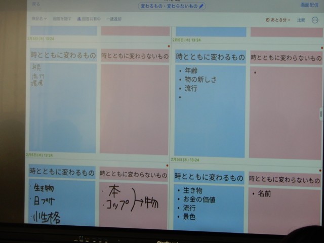 国語で「時とともに変わるもの・変わらないもの」について考えていました。人のこと、物のこと、気持ちのことなど様々でした。皆さんにとって、時とともに変わるものは何ですか?そして変わらないものは何ですか?