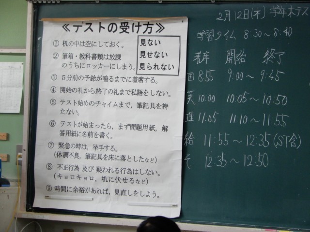 2/12(木)1年生 2年生 学年末テスト