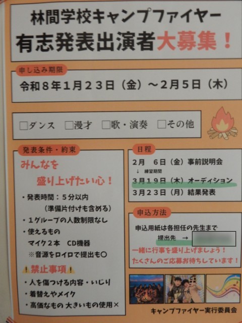来年度の5月に実施する林間学校に向けて、実行委員、有志、食事のことなど準備を進めています。