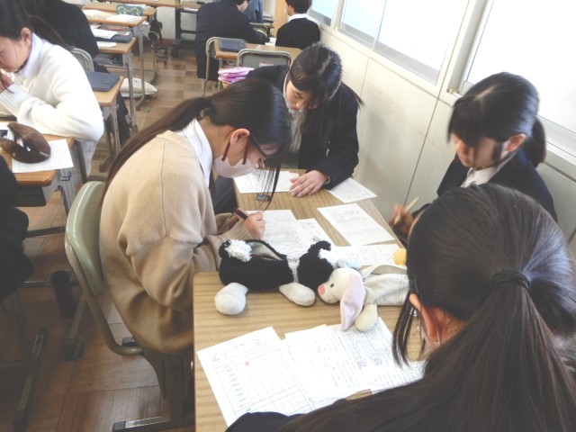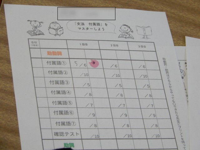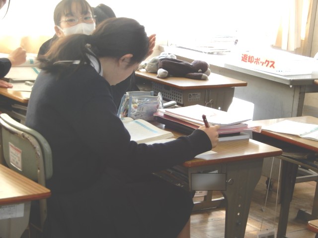国語で文法の学習をしていました。段階に応じたプリントが用意されており、自分で調べながら学習を進める生徒もいれば、友達と教え合いながら学習を進める生徒も見られました。