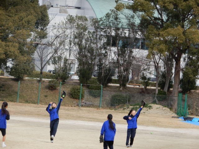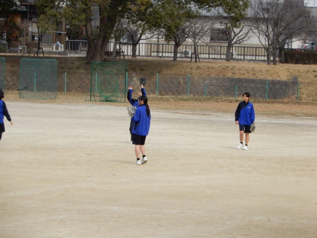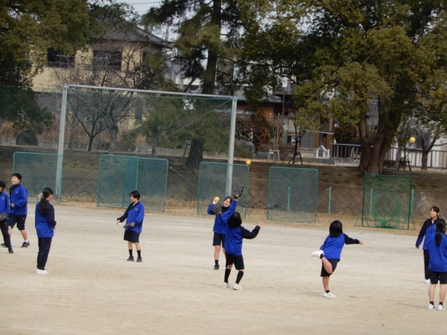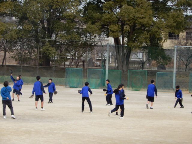 運動場でソフトボールに取り組んでいました。まずはキャッチボールからでした。山なりのボールを投げていましたが、投げたボールのコントロールが難しいようでした。