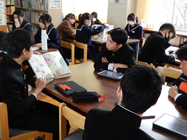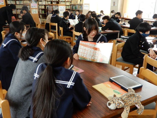 図書館で3年生が読み聞かせをしていました。自分で選んだ絵本を使い、丁寧な口調で読んでいました。本や聴く人を交互に見ながら読む姿が印象的でした。