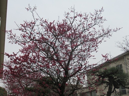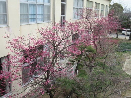 あおば学級前の校庭にある梅の木が、いつの間にか花を咲かせていました。最近のぽかぽか陽気にでも誘われたのでしょうか。