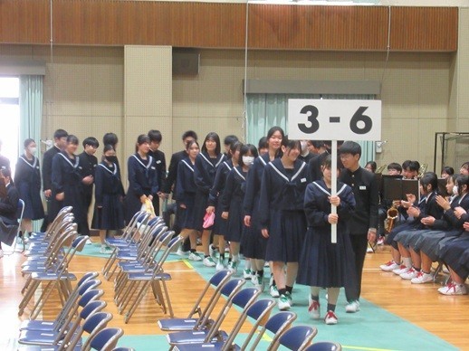 5・6時間目に飛翔館で3年生を送る会を実施しました。生徒会執行部が中心となって会を進行しました。クイズや縦割り学級メッセージ、部活動メッセージなど会は盛り上がっていき、懐かしい先生方からも激励のメッセージをいただくことができました。