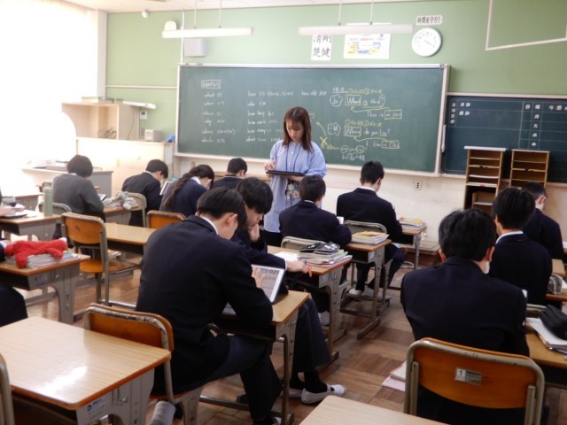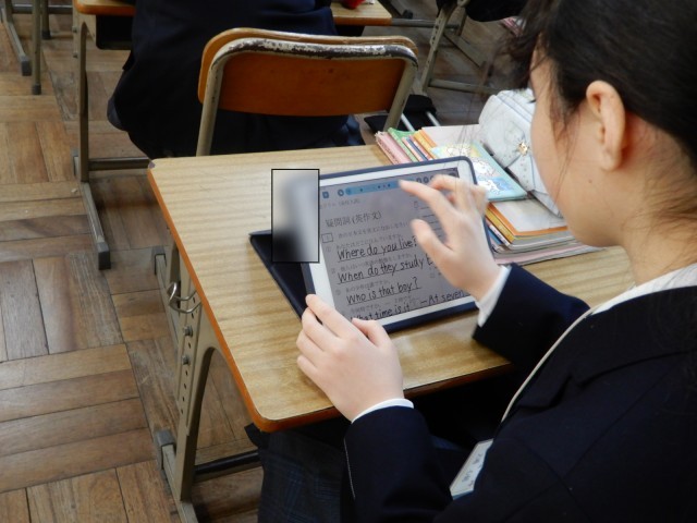 1年生の授業で英語では、1時間の中で2つのコースを設けて習熟度別学習に取り組んでいます。