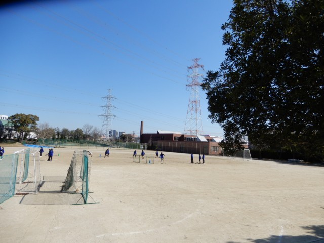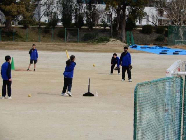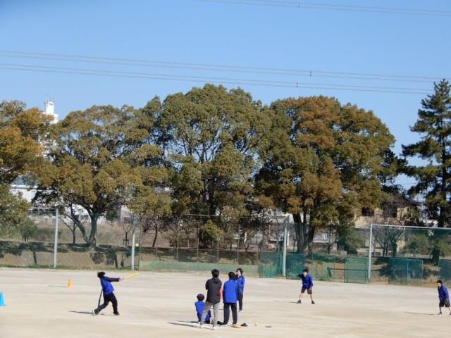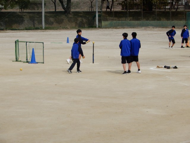 ベースボール型のゲームに取り組んでいました。投げたボールを打つのではなく、ティーバッティング形式にするなどルールを工夫して取り組んでいました。