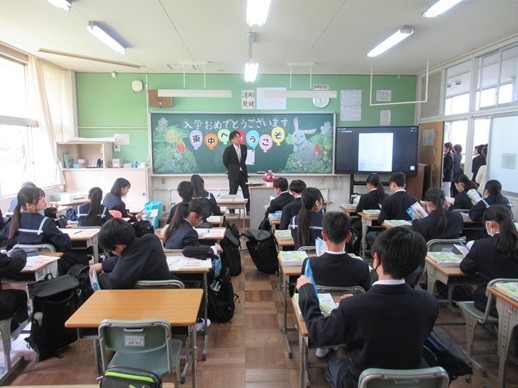 入学・始業式後に、中学校生活初めての学活を行いました。主に担任の自己紹介・所信表明や配布物・新しい教科書の確認をしていました。生徒たちはやや緊張しながらも、先生の指示を聞いて動くことができていました。
