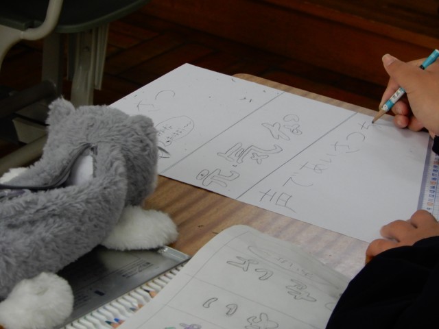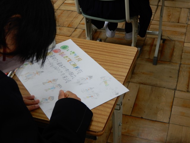 あおば学級では級訓が決まり、級訓の掲示物を作成していました。今年度の級訓は「あいさつ」です。