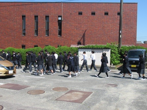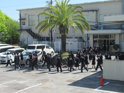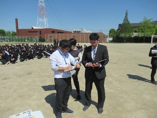 5時間目、調理室から出火したことを想定に火災避難訓練を全校で行いました。生徒たちは放送の指示に従い、迅速にグラウンドに避難することができました。職員も実際に生徒の在籍を確認し、教頭先生に報告しました。