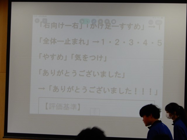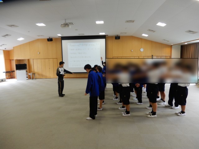 多目的室からとても元気な声が聞こえてきました。集団行動を行っていました。この後はそれぞれの班に分かれ、自分たちで指示を出しながら動く練習のようです。