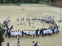 朝早く登校した生徒が、自主的に渡り廊下などの窓を開けています。