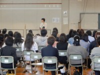 まと、後期生徒会役員の任命、部活動の表彰が行われました。今日から教育実習が始まる先生の自己紹介もありました。