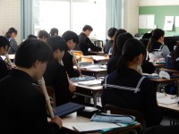 三年生の教室でも書写に取り組んでいました。とてもよい姿勢で書いている生徒もいて、...