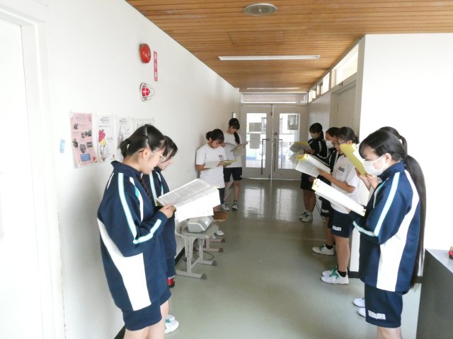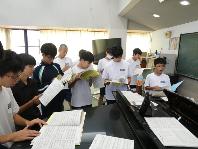 音楽の授業では、来月に行われる合唱コンクールに向けての練習が行われています。今日は各パートごとに分かれて音とりをしていました。しっかり音をとって合唱へとつなげていきたいですね。