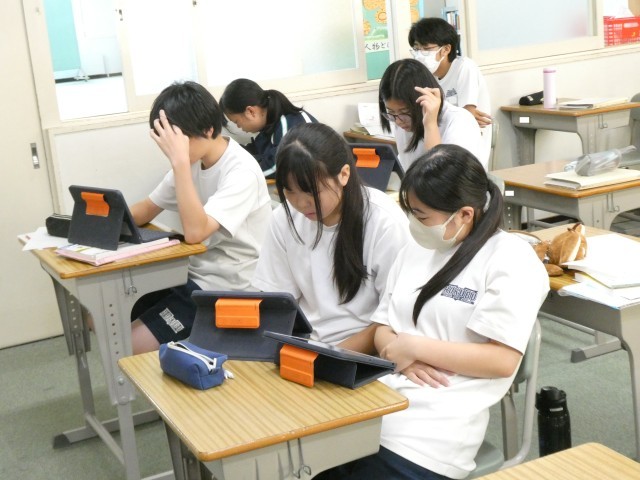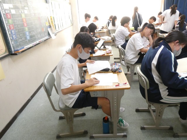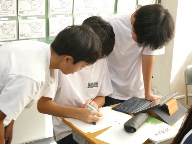 3年生 数学の授業の様子です。教え合って問題を解いている姿が印象的でした。
