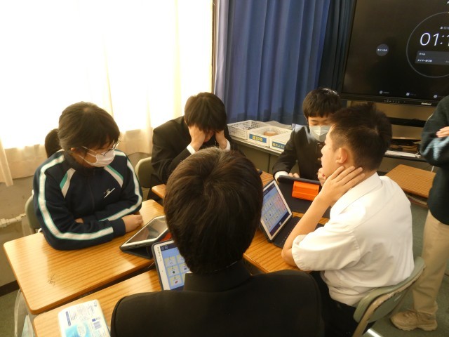 国語の授業では合意形成を目指し各班で討論を行っていました。それぞれ何を優先するべきかという議題で話し合っていました。自分の意見を伝えつつ、他人の意見を聞くことも求められますね。