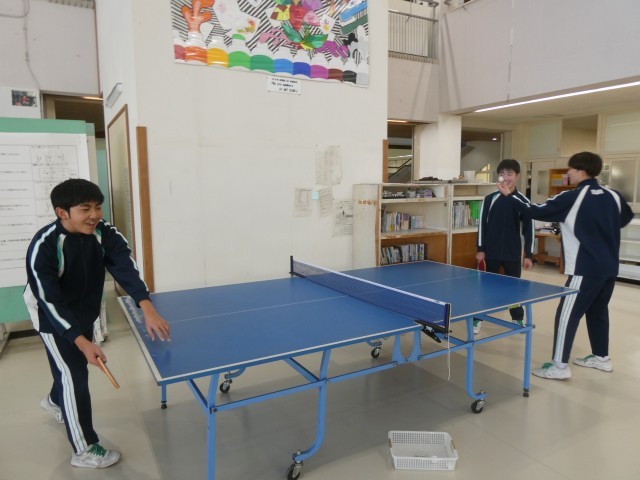 保健体育の授業ではホールで、バドミントンや卓球といったネットスポーツを行っていました。教科の授業は今日で終わりです。明日は大掃除があるので、みんなで学校をキレイにして、キレイな状態で式に臨みたいですね。