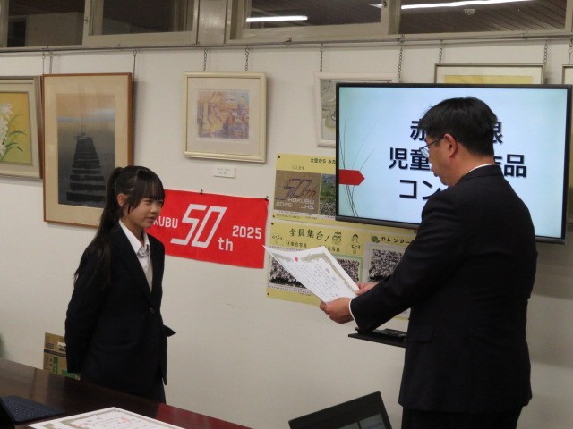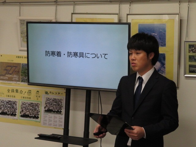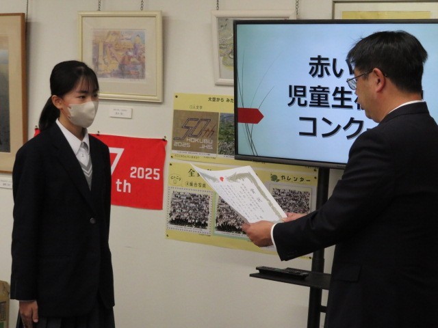 今日で2学期が終わります。体育館が空調設備設置工事中のため、今日の式は放送で行いました。終業式の式辞では,校長先生から2学期・今年一年を振り返るとともに、「冬休み中に2026年の計画を立て、まわりを思いやりながら”オンリーワンのわたし”となるよう、自身を磨いていこう」という話がありました。式終了後には、生徒指導主事から「いのちを大切にしよう」「SNSの正しい使い方を」というメッセージが伝えられました。