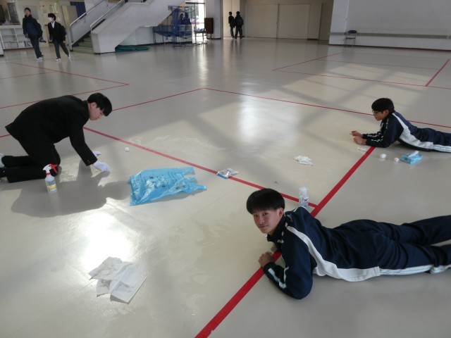 3年生では卒業に向けて愛校作業がありました。教室ロッカーのペンキ塗りや床磨き、グランドの側溝の泥さらいなどを行いました。3年生のみんなが一生懸命にやってくれたおかげで学校はとってもきれいになりました。ありがとうございました!