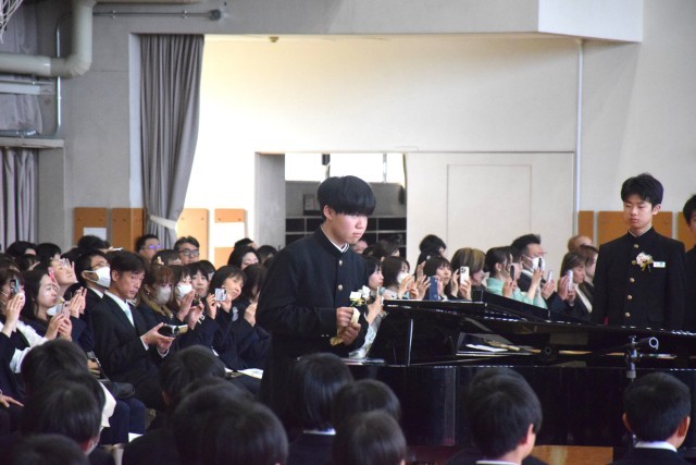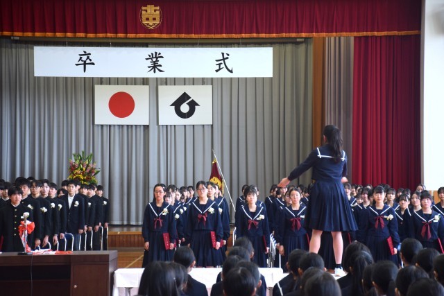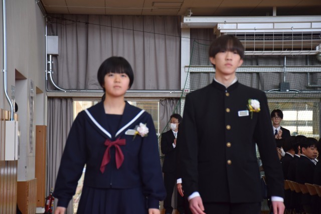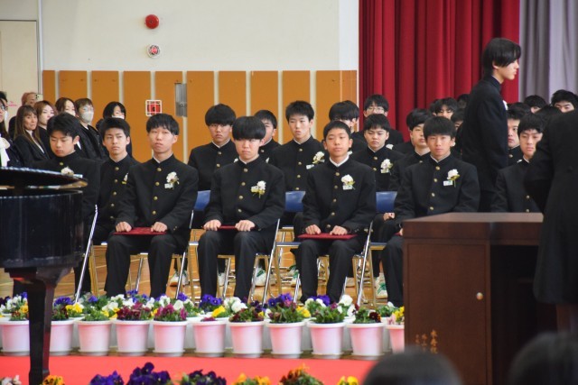 本日卒業式があり、3年生161名が卒業しました。3年生の皆さんご卒業おめでとうございます。素晴らしい送辞、答辞、合唱があり会場が感動の渦に包まれました。
