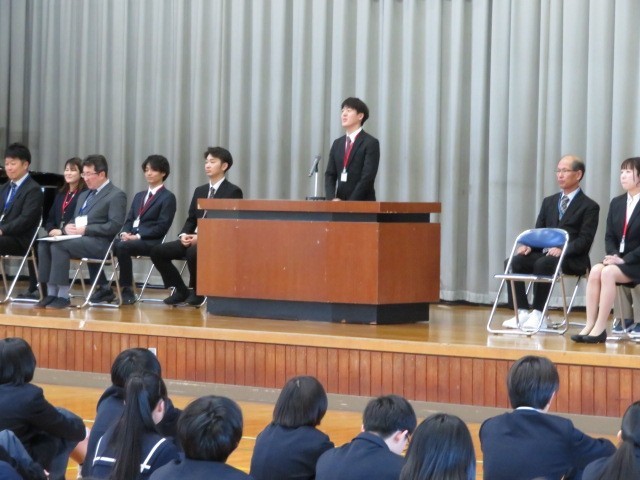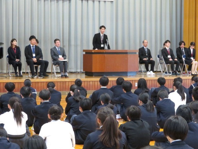 式では、着任した教職員一人ひとりから挨拶があり、生徒たちは興味津々な様子で話に耳を傾けていました。