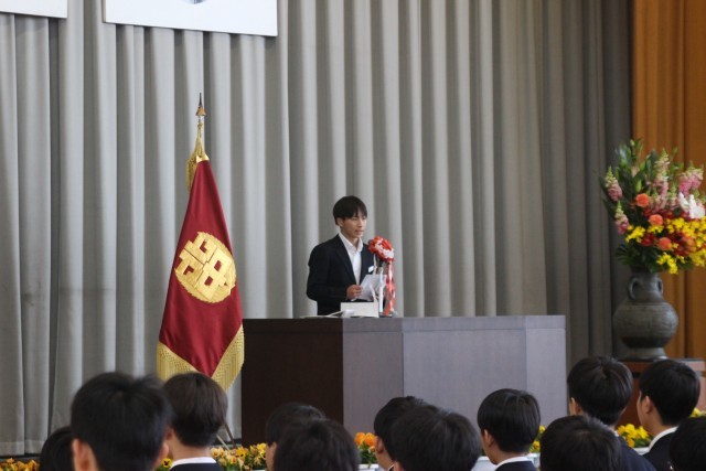 式中では在校生代表として生徒会長から歓迎の言葉がありました。新入生代表の誓いの言葉では、気持ちを新たに中学生として学校生活をしっかり送っていきたいという気持ちを示してくれました。