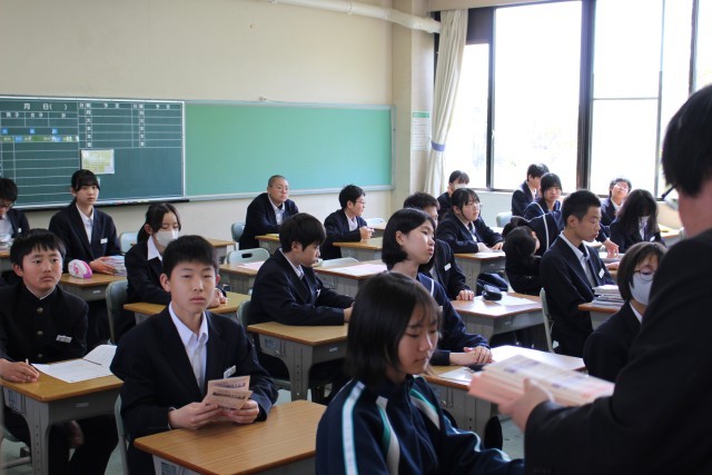 新しい学級での活動がスタートしました。各学級、配付物の確認や明日からの流れを確認しています。
