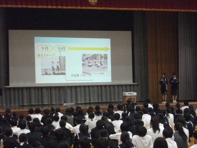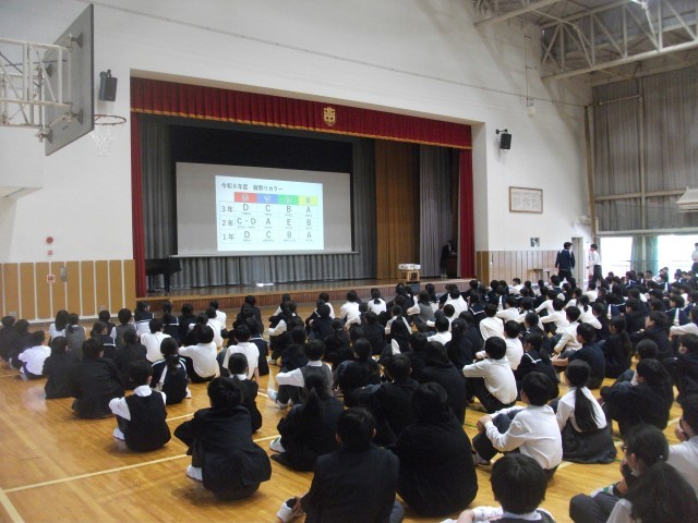 魅力ある年間行事の説明や各行事で活動する縦割り班の紹介がありました。