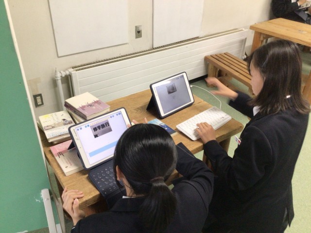 生徒たちは、それぞれが思い浮かべたテーマに合わせて写真を選び、文章とともに表現しました。身近な出来事や好きなものを英語で伝える活動を通して、楽しみながら表現力を高めています。