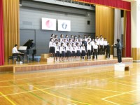 上の写真は音楽科の授業の様子です。日本の伝統楽器「琴」について学習しています。グループに分かれて、昔の楽譜「縦譜」を見ながら「さくらさくら」を弾いています。